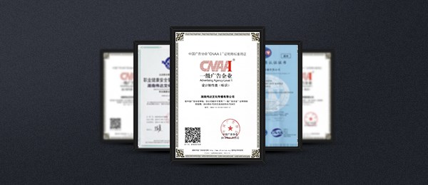 01企業(yè)已通過9項(xiàng)資質(zhì)認(rèn)證,榮獲國家一級企業(yè)、湖南省一級廣告企業(yè)等18項(xiàng)榮譽(yù),9項(xiàng)國家專利,產(chǎn)品安全可靠